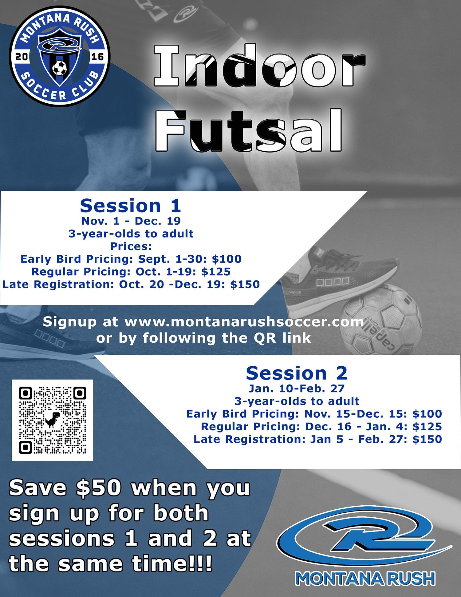 - Winter Indoor Soccer/Futsal is open to ages 3 through Adult.